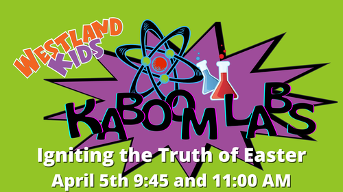 9:45AM and 11:00AM Westland Kids is Hosting Kaboom Labs: Igniting the Truth About Easter